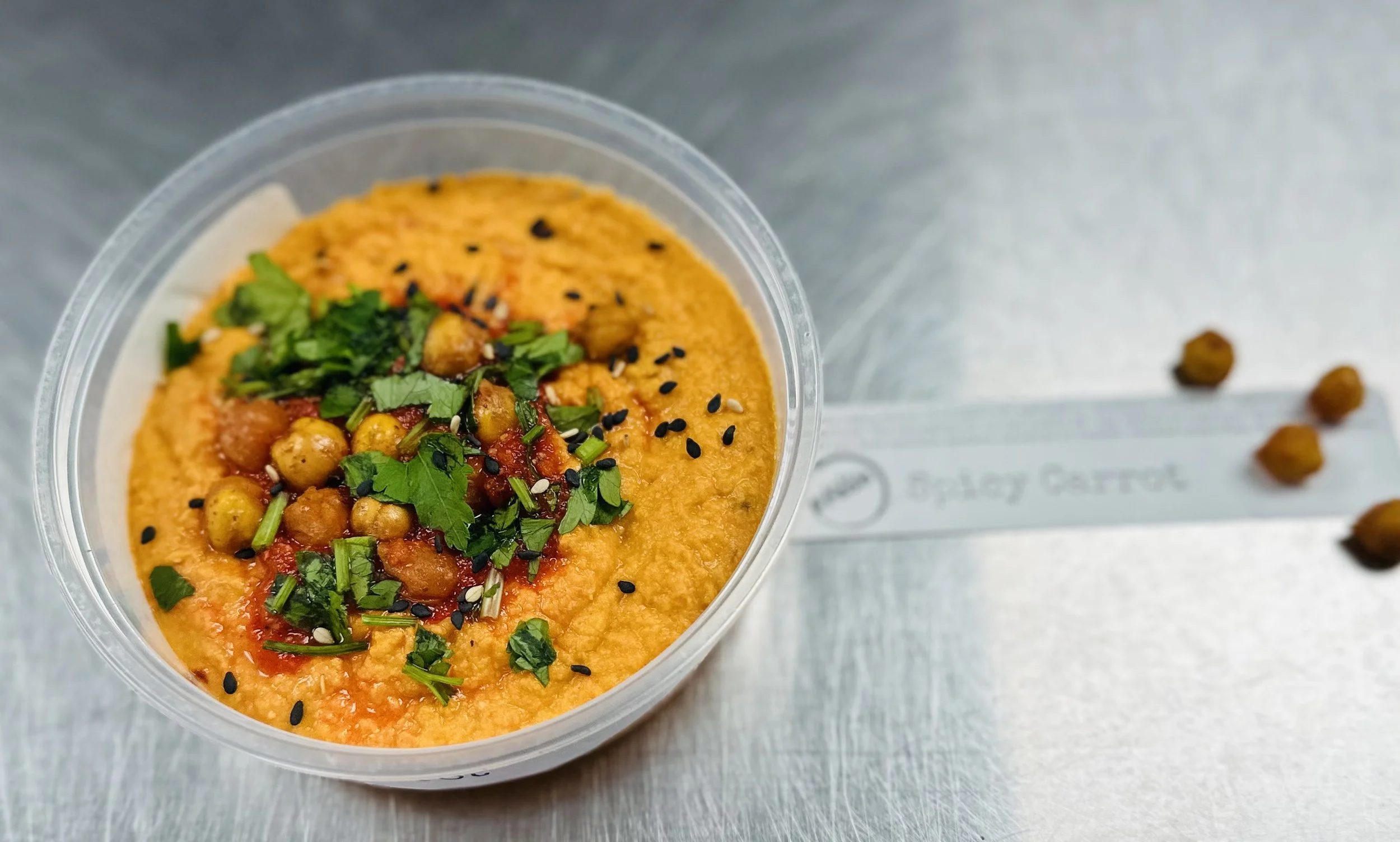 Dive into a world of bold flavors with our Spicy Carrot Hummus! Picture this: crisp carrots, exotic cardamom, hearty chickpeas, a kick of chili, warm cumin, smoky paprika, and a refreshing twist of lemon zest, all expertly blended into a velvety fusion with creamy tahini. Embrace the bold savor the spice.